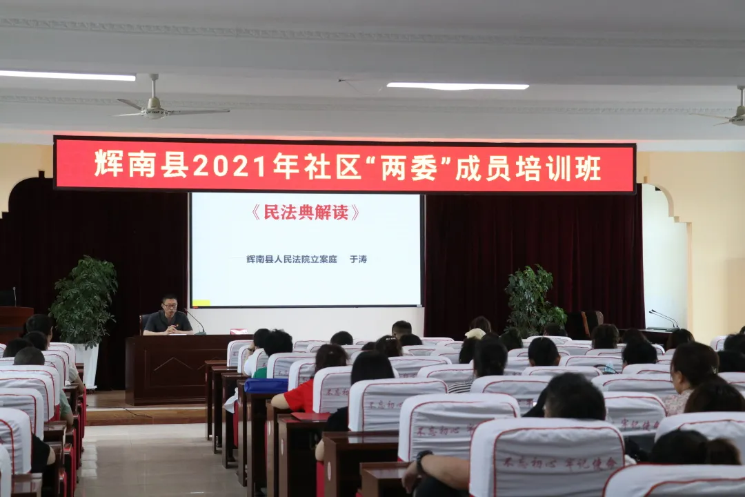 6月18日下午,辉南县人民法院立案庭庭长于涛一行走进辉南县2021年社区“两委”成员培训班,为全县社区两委干部、社区工作人员带来一次生动的法治课堂。