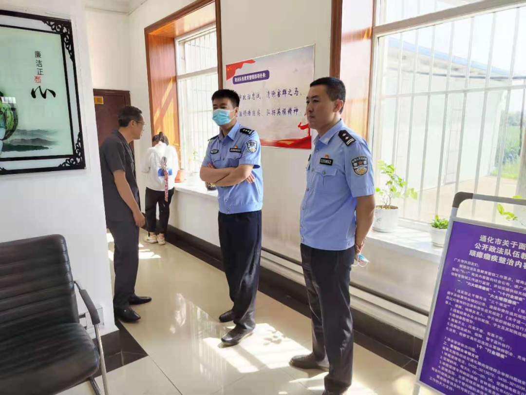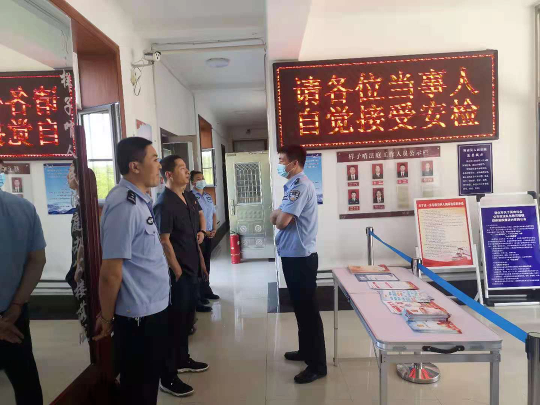 7月13日,吉林省高级人民法院司法警察总队副总队长杨文华一行来到辉南县人民法院对全院的警务安全工作进行检查指导,辉南县人民法院司法警察大队政委肖寒陪同杨队长一行检查了全院各项警务工作。