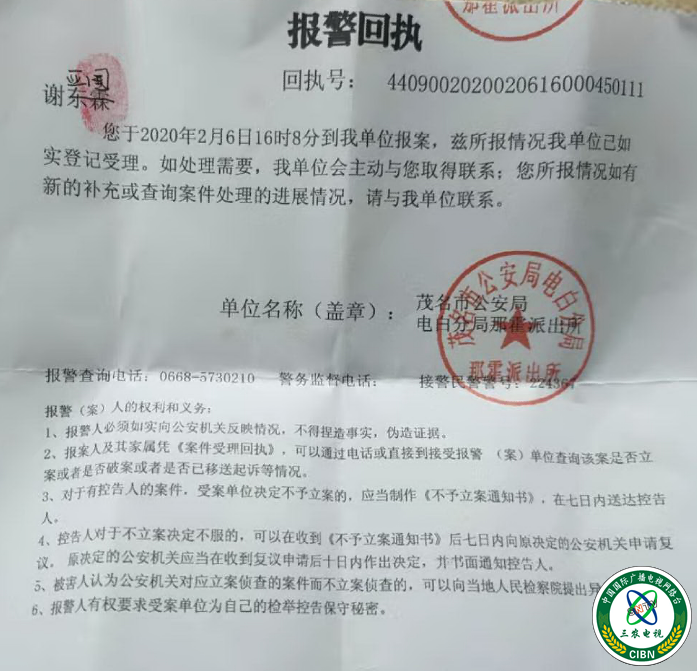 据悉,同村谢亚国的屋地相邻东霖地也同时被抢,报警后已拿到报警回执。