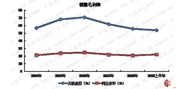 2019年天铁公司中报显示,公司的销售毛利率为54%,远远高于同业水平(中位数)的22%。结合前期数据来看,天铁股份的毛利率长年比同业高出30个百分点以上。