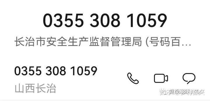 欲将情况向应急局实名举报,但是接线员很简单告诉我们,他们不负责这样的举报,可以向长治市煤监局举报,并向我们提供了长治市煤监局的电话。(下图)