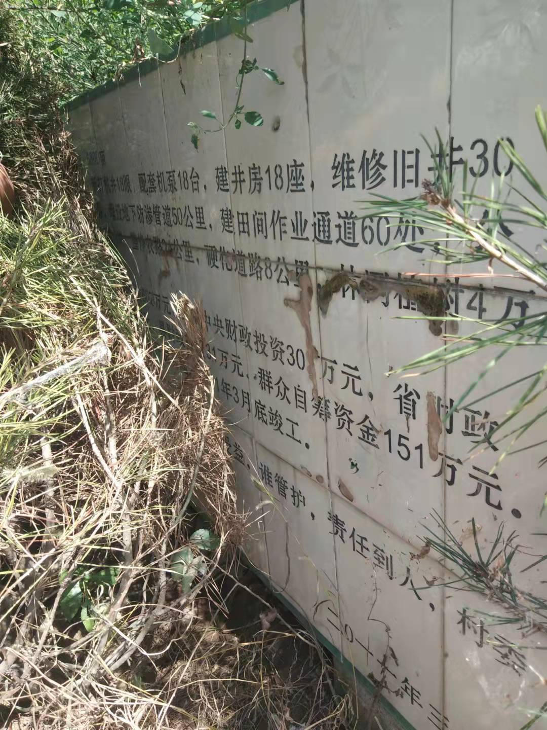 至今,在这块地里还保留着“河北省农业综合开发”字样的牌匾,石匾上明显标注着:配套机泵18台,建设机房18座,地下防渗管道50公里,建设田间作业通道60处,显示着:中央财政30万元、省市财政135万元、包括群众自筹资金151万元的资金筹备及建设情况。