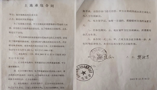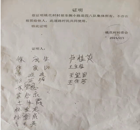 2003年,顾良知私自以村委会名义将道路东侧的地块租给了自己老婆樊继芳。刘一千表示,顾良知家租用土地之后,他和鱼塘老板王冠军的日子就开始难过了,顾良知经常欺压刁难他们,2018 年,顾良知又伪造了一份补充合同,称原来砖瓦厂的这条公共道路被他家租下来了,不允许其他人家车辆通行。而顾良知在2018年之前已经离开桃花村,到镇政府上班了,时任桃花村村委主任兼村支书马勇出具书面文字,证明顾良知那份合同是虚假的,在镇政府用章登记簿上也没有查到对应的盖章登记。