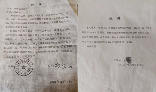 村民还反映,锦屏镇政府环境达标整治需要免费把原来砖瓦厂的这条旧马路硬化,可顾良知硬是不让铺路。现任桃花村委主任陶建介绍说,“镇长、书记出面协调也没解决问题,最终还是顾良知自己出资铺路,铺好后就装了大铁门”,自此刘一千、王冠军以及周边村民车辆就无法通行了,导致刘一千和王冠军无法生产经营,损失惨重!村民表示,顾良知的目的就是想挤走刘一千和王冠军。