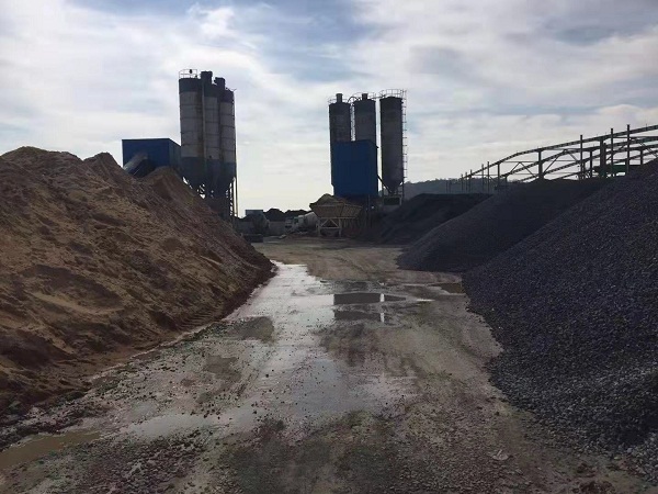 继续向厂内深入,又发现了几处破石机及水泥搅拌的场地,原料都是露天堆放,满地粉尘,现场没有看见到喷淋洒水等抑尘设备。(如图)