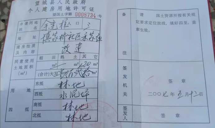 余科亮透露,他的房子是1997年建的,批准占地180平方米,没有几层的限制(因为当时望城县没有规划局);余光柱的房子建于2007年,都有合法建房手续。所在地原属望城县东城镇五杉村,2011年6月望城县改为望城区,2015年11月划入铜官街道华城村。