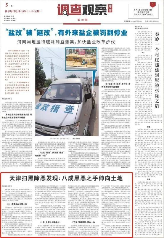 “出租店铺、售卖四合院、索要天价拆迁费......占了公家的地,再要公家的钱,这样的无本买卖近年来成了一些黑恶势力发财的拿手好戏。”新华每日电讯于2020年11月16日如是报道。(原标题《天津扫黑除恶发现:八成黑恶之手伸向土地》。)
