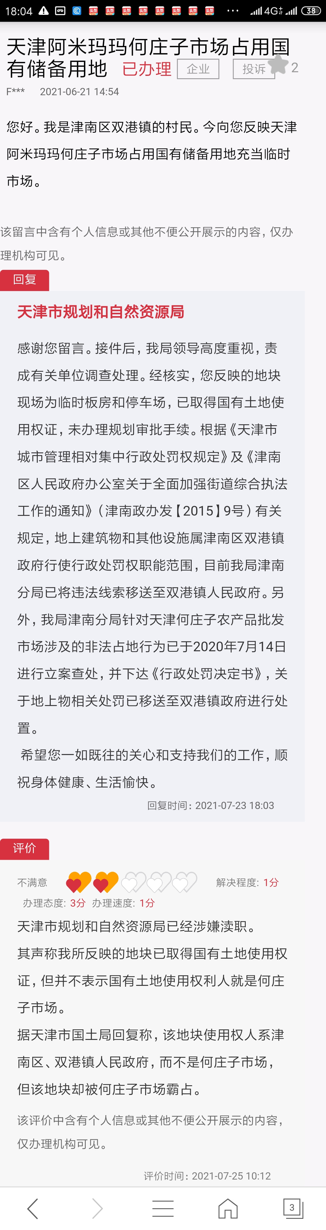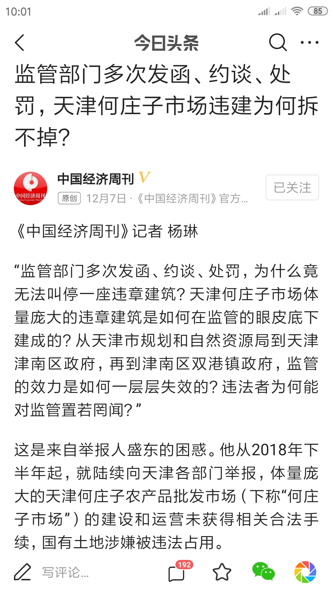天津市规划和自然资源局甚至向两级政府发了律师函,摆出“对薄公堂”的架势。然而面对群众举报时,却又在为何庄子市场辩解。