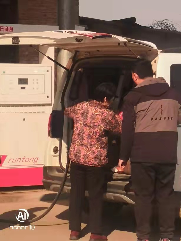 邢台市南和区史召乡胡佃村村内有一个违规加油点,随意加油,违背《成品油管理条例》,随意给面包车后备箱里拉的两个50斤油壶加油。
