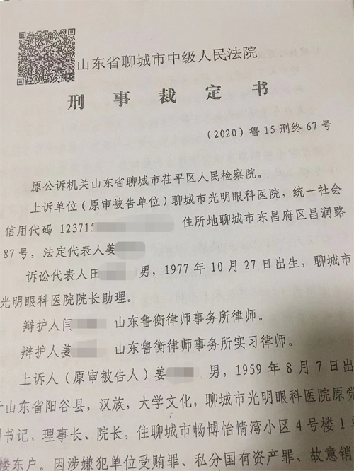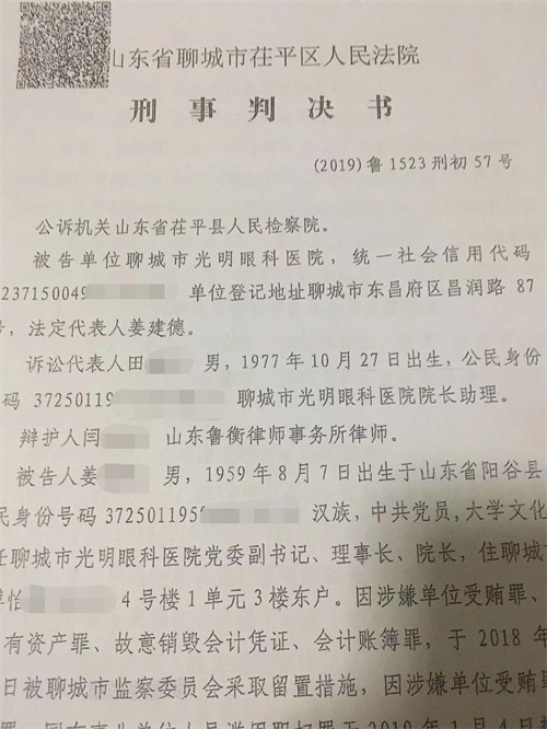 然而在聊城市的两份刑事判决书却显示:聊城市光明眼科医院是作为国有事业单位性质为依据下达的判决。家属疑惑是否集体所有制的性质可以当做国有事业单位来判决?