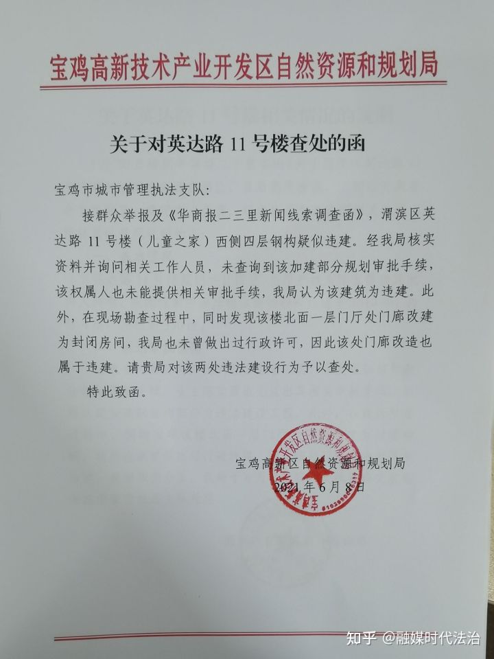 据知情人透露:此楼的违章建筑部分已存在10多年了,曾多次被媒体曝光,但是相关部门都是无法拆除,背后有当地的大领导给撑腰,谁也拆不了。此违章建筑的老板陈某某在宝鸡市有着相当大的能量,每次检查都能找关系摆平。 下面我们就来看一下这栋楼的大概情况。此楼共为6层,南北长,东西短,类‘似于工字型的造型。这栋楼还挂着“高新区传统文化示范园”的牌子。此楼的3层有6处共计:549.7平方,5层有两处共计:605.87平方,六层一处共计:48.35平方。房屋的产权为:“高新技术产业开发总公司”所有。(也就是属于宝鸡市高新管委会的产权)在此想问一下相关领导,你们是否还记得这栋楼上有国有资产的存在,是否存在挂羊头卖狗肉,还是多年来为他人谋取利益?近20年来的房屋租赁费用是否进了公家的账户?相关领导是否知晓?还是这些资产已经成了某些人的小金库。