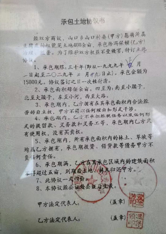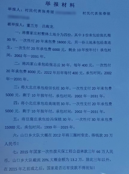 没有村民代表签字的土地承包协议(举报人提供)