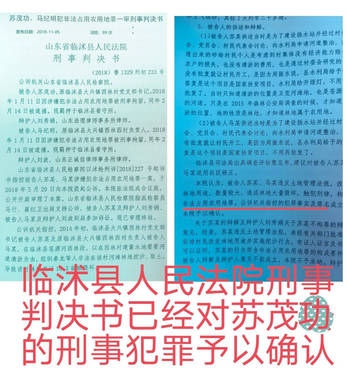 苏茂功在担任我村村支书期间,不仅涉嫌破坏耕地29.36亩、林地222.08亩,还在河内非法采砂数额巨大、涉嫌贪污等诸多罪名,造成村集体财产流失严重,村民敢怒不敢言,就是这样一个罪大恶极的人,为什么被法院刑事判决后依然还能保留党籍?且出狱后不思悔改,依然利用其党员身份搅合的村内鸡犬不宁,最近竟然还要求临沭县组织部门通过他的党员转正申请,实在令人无法信服,究竟谁在为其充当保护伞?