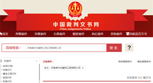 然而在实际经营活动中, 据中国裁判文书网检索数据显示,河南省中创建筑工程有限公司共检索到462篇文书,例如:河南省高级人民法院民 事 判 决 书(2020)豫民终63号、河南省高级人民法院民 事 裁 定 书(2020)豫民再330号、中华人民共和国最高人民法院民 事 裁 定 书(2020)最高法民申1099号、河南省信阳市中级人民法院民 事 判 决 书(2021)豫15民终4307号、宁夏回族自治区固原市中级人民法院民 事 判 决 书(2021)宁04民终1141号、河南省鹤壁市中级人民法院民 事 判 决 书(2021)豫06民终1140号、内蒙古自治区赤峰市中级人民法院民事裁定书(2018)内04民终4782号、河南省郑州市管城回族区人民法院民 事 判 决 书(2021)豫0104民初2298号、河南省淇县人民法院民 事 判 决 书(2021)豫0622民初404号、河南省浚县人民法院民 事 判 决 书(2020)豫0621民初333号、河南省新郑市人民法院民 事 判 决 书(2017)豫0184民初1913号......等裁判文书。其中不少裁判文书内容多处显示该企业在经营活动中出借资质行为存在。