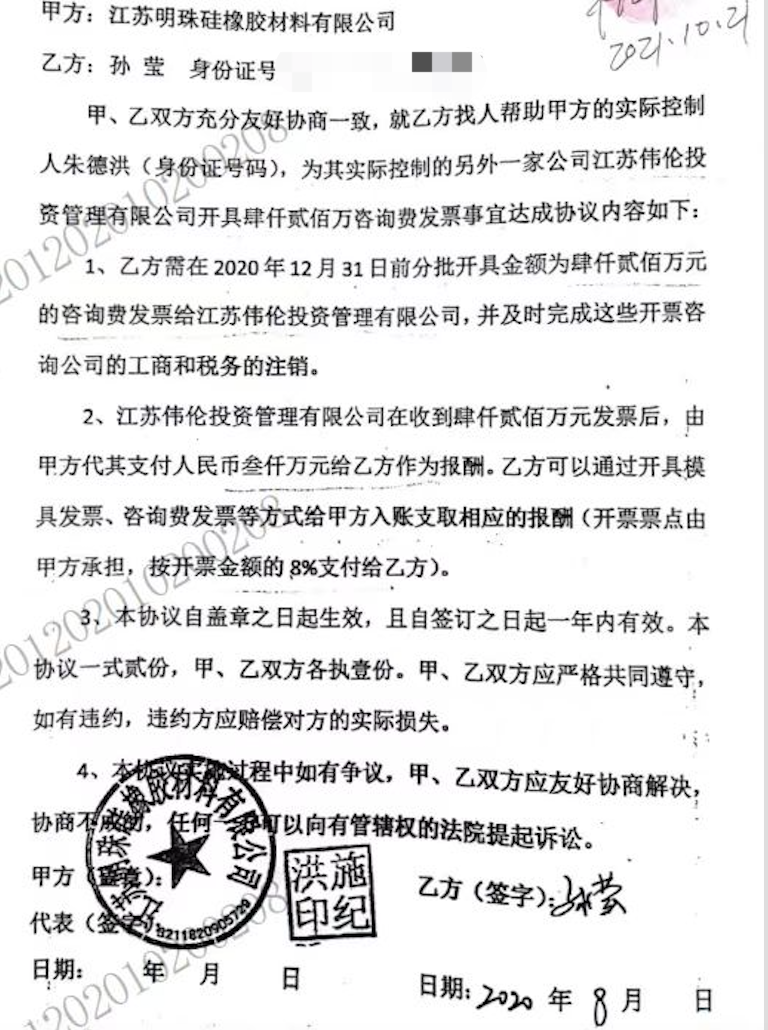 而根据孙莹确认本人已收款的文件来看,自2019年起明珠公司银行付外部单位和个人以及通过直接收取明珠公司资金等方式,孙莹确认本人收款金额为2.18亿元。