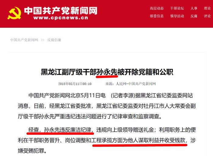 恶有恶报,孙永先终因严重违纪违法,于2018年被“双开”并判刑。