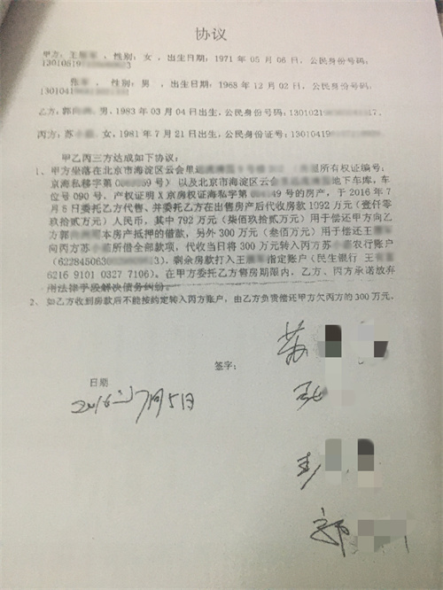 案件回顾:王某的前夫张某向苏某借款巨款,双方在讨债过程中达成还款协议。协议明确规定,当王某处理自己名下房产时,苏某承诺放弃使用法律手段解决债务纠纷。然而,苏某却违反协议,通过司法途径起诉至石家庄市桥西区人民法院。