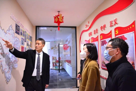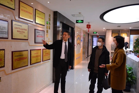 杜小东主任对四川民族学院周良勇书记、叶晓彬院长一行表示了热烈欢迎,并引导大家参观了盛豪所的民族团结文化墙、办公区、等候区、贵宾区、党建室等区域,介绍了盛豪所的基本情况、城市地区开展民族法律服务情况、在“无律师县”开展民族地区法律援助工作情况及相关工作成果,对盛豪所关于推动涉藏州县依法常态化治理工作以视频的方式做了介绍。