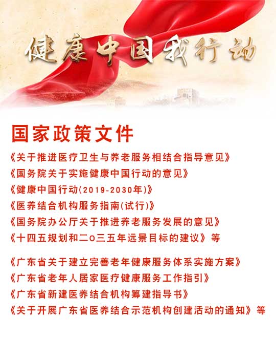 广东省医养融合在全国处于领先发展水平,广东省卫生健康委联合省民政厅等部门及时出台了一系列省级政策文件,为医养融合工作开展提供支撑,如《广东省关于建立完善老年健康服务体系实施方案》、《广东省老年人居家医疗健康服务工作指引》、《广东省新建医养结合机构筹建指导书》、《关于开展广东省医养结合示范机构创建活动的通知(粤卫老龄函〔2021〕5 号)》等,提出将树立一批特色鲜明、示范性强的医养融合机构,形成具有地方特色、可复制、可推广的经验做法,在广东省21地市复制孵化。医养融合康复基地的实施运营符合国家政策导向,迎来了巨大的发展前景。