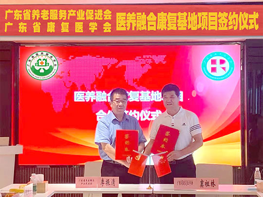 图:广东省养老服务产业促进会会长李振清与广东省康复医学会会长窦祖林