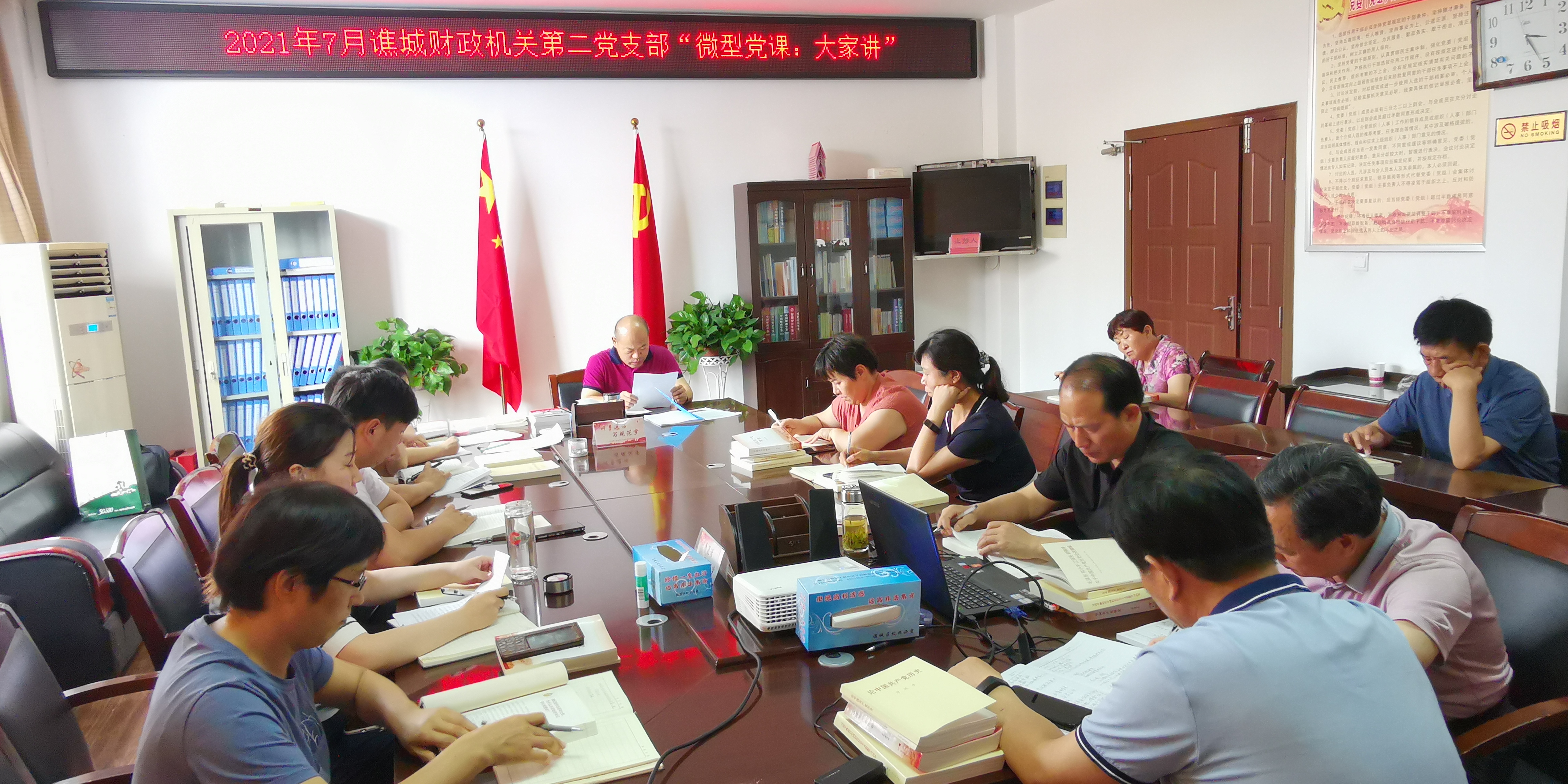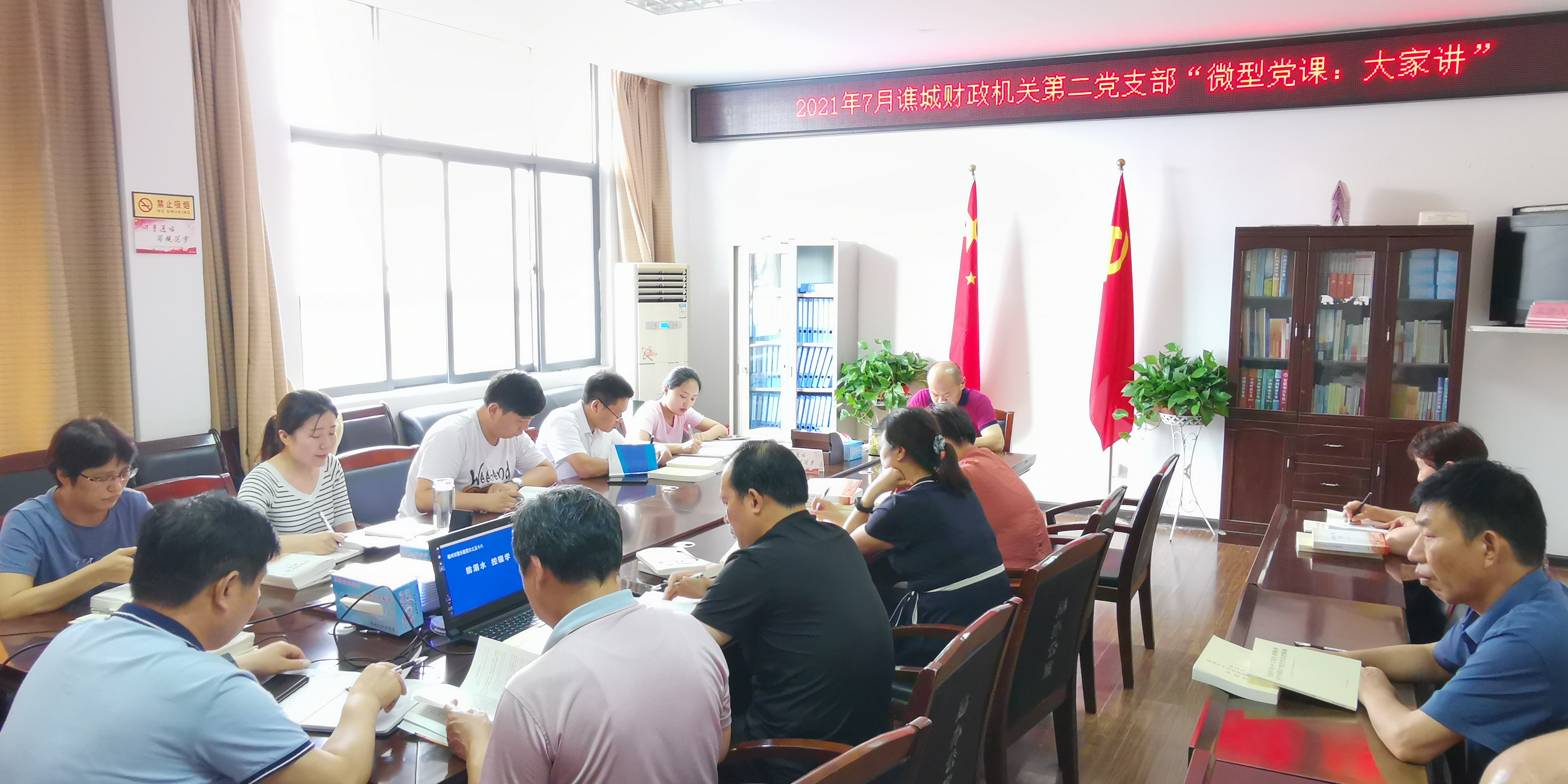 2021年7月16日的主题党日活动中,安徽省亳州市谯城区财政局结合开展党史学习教育实践,组织党员同志以精确学党史、精准选课题、精练讲故事等讲好“微型”党课,用不同的“讲与做”内容、不同的“说与行”形式,从“微型党课:大家讲”中悟思想,丰富党史学习教育工作内容,积极推进学史力行往深里走、往实里抓。
