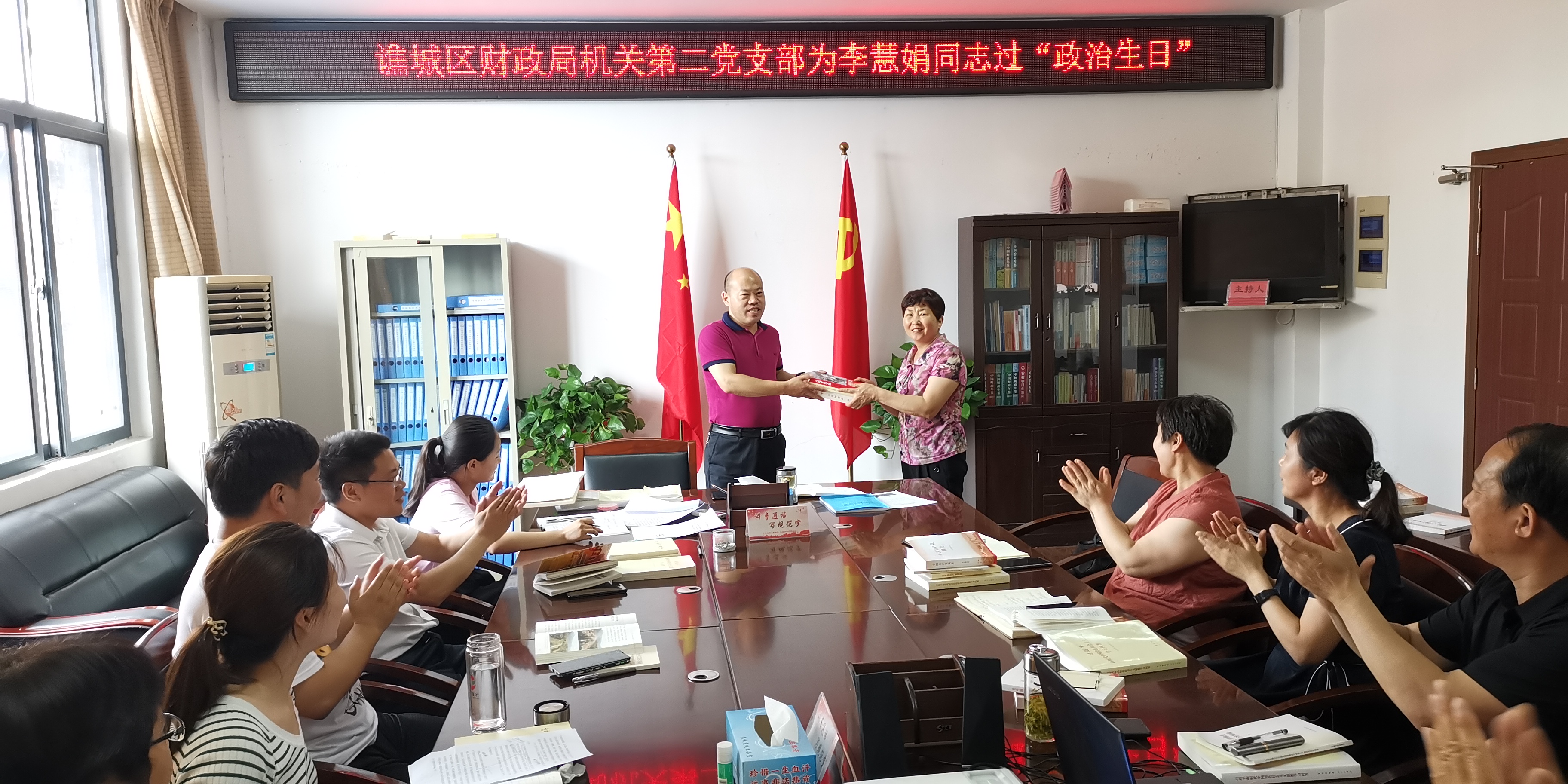 2021年7月16日,安徽省亳州市谯城区财政局机关第二党支部利用主题党日,集体为1988年7月加入党组织的李慧娟同志过“政治生日”,并赠送了由党支部书记在《习近平治国理政(第三卷)》《习近平在宁德》纪念书籍上,签字留言“建党百年华诞、喜迎政治生日”特殊意义的“生日礼物”,祝她不忘入党之初心,牢记服务人民之使命,担当财政岗位之责任,永葆政治心态之健康,家庭生活和谐之幸福,在努力实现“中国梦”的新征程上继续立新功,再展财政部门巾帼不让须眉之岗位风采。