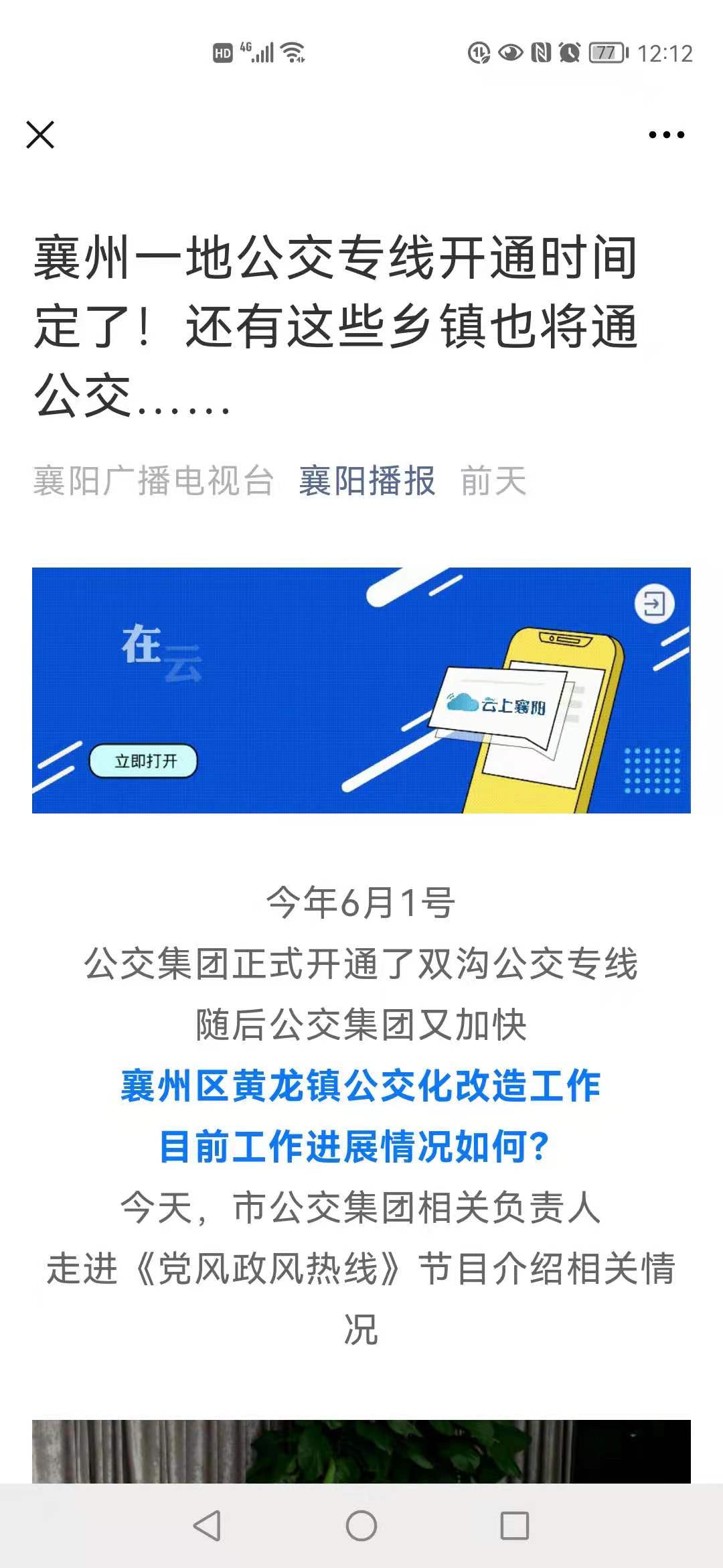 襄阳黄龙:公交要通了 群众满意了