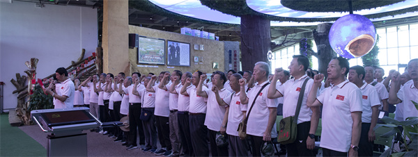 老兵们在展览大厅鲜红的党旗下,全体老兵肃然起立,握紧右拳,伴随着激昂的旋律,大家高声唱响国歌,重温入党誓词,举行入党宣誓活动,参加活动的老兵们党龄不同,兵龄不同,但他们有一个共同的愿望:不忘初心,牢记使命,爱党爱国爱人民,为党和国家奉献力量!