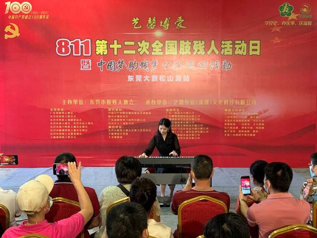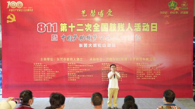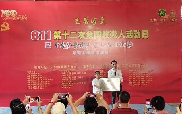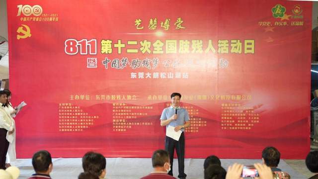 在中国共产党建党100周年之际,迎来了第十二次全国肢残人活动日,经东莞市肢残人协会研究决定,于2021年08月22日下午,在东莞市隆重举行,艺馨博爱“811”第十二次全国肢残人活动日暨“中国梦•助残梦公益巡回活动”(东莞大朗松山湖站)。本次活动的举办,得到了广东省肢残人协会主席刘志艳同志、东莞市残疾人联合会、东莞市残疾人福利基金会、东莞市聋人协会、东莞市盲人协会、东莞市智力残疾人和亲友协会、东莞市精神残疾人和亲友协会、东莞市残疾人企业家协会、大朗镇残疾人联合会等部门负责人指导,社会各界爱心人士、各大媒体记者纷纷出席本次活动。