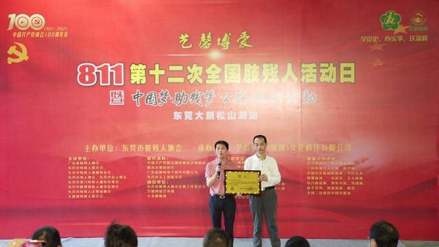 本次活动由东莞市肢残人协会主办,艺馨友爱(深圳)文化科技有限公司承办,中国共产党松山湖高新技术创新园联合支部委员会、广东爱助残电子商务有限公司、东莞市人工智能学会联合承办,广东一心制衣有限公司、广东顺德迅康贸易有限公司、深圳波峰演艺设备有限公司、广东全盛商业有限公司、东莞市叁箩生物科技有限公司、东莞市巴马活泉食品饮料有限公司、智厨娘(广东)餐饮管理有限公司、东莞市闽酥园食品有限公司、东莞市爱心支持,东莞市肢残人协会文体工作委员会、艺馨博爱艺术团、大圣歌唱团友情演出。松山湖电视台、三农电视台、人民网、新华网、中国经济新闻联播网、今日头条、搜狐新闻、一点资讯、天天快报、东方财富网、博客中国、雪球网、知乎资讯、凤凰新闻、网易、全国三农调研中心等媒体支持。活动中,“中国梦·助残梦”组委会主任欧阳诚晟给东莞组委会主任李伟建和长安组委会主任曾碧妮颁发组委会牌匾。东莞市肢残人协会主席吴炳光和副主席苏耀伦给原东莞市肢残人协会主席陈磊颁发名誉主席证书,和给“中国梦·助残梦”组委会主任欧阳诚晟颁发荣誉主席证书。本次活动在一首《明天会更好+国家》的大合唱中圆满结束!