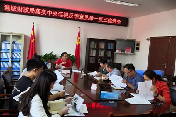 2021年9月9日下午,安徽省亳州市谯城区财政局召开落实中央巡视反馈意见整改举一反三推进会,对区政府指定的12项整改任务,局自身举一反三的22项内容,进行“一查二审三充实”督促检查,以“回头看”的方式开展自查自纠,确保中央巡视反馈意见整改任务落实处、改到位、见实效。