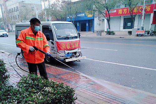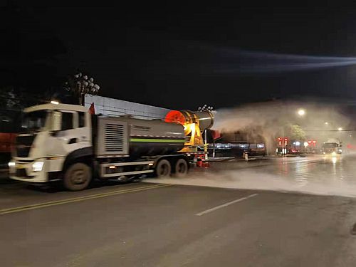 二是城区内主次干道消杀:利用洒水车、雾炮车、洗扫车对城区内的主次干道进行全域消杀,保证每日至少消杀2次。每日22:00至次日5:00利用雾炮车、洒水车及人工持续喷洒消毒剂。