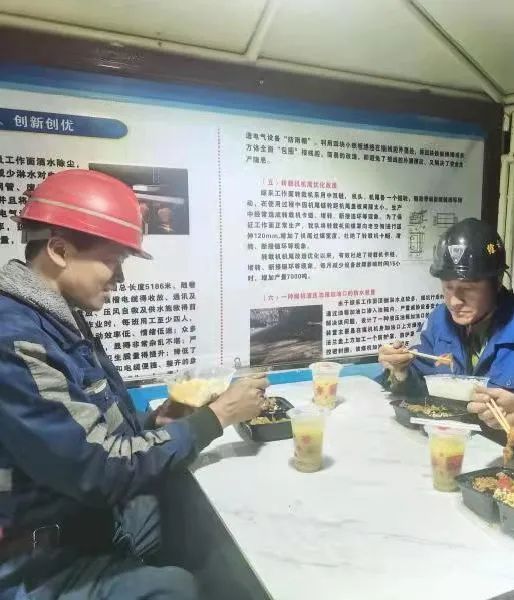 “真是不敢想,井下也能随时喝上热水,还能随时加热饭菜,撩咋咧!”在11203工作面机尾段摆放着一间移动的职工餐厅,综采一队职工张海博,轻轻推开职工休息驿站门,窗明几净,一台防爆加热饮水机格外抢眼,张海博用水杯接完热水后,顺手打开“微波炉”将班中餐取出,正准备享受热腾腾的鸡腿饭。