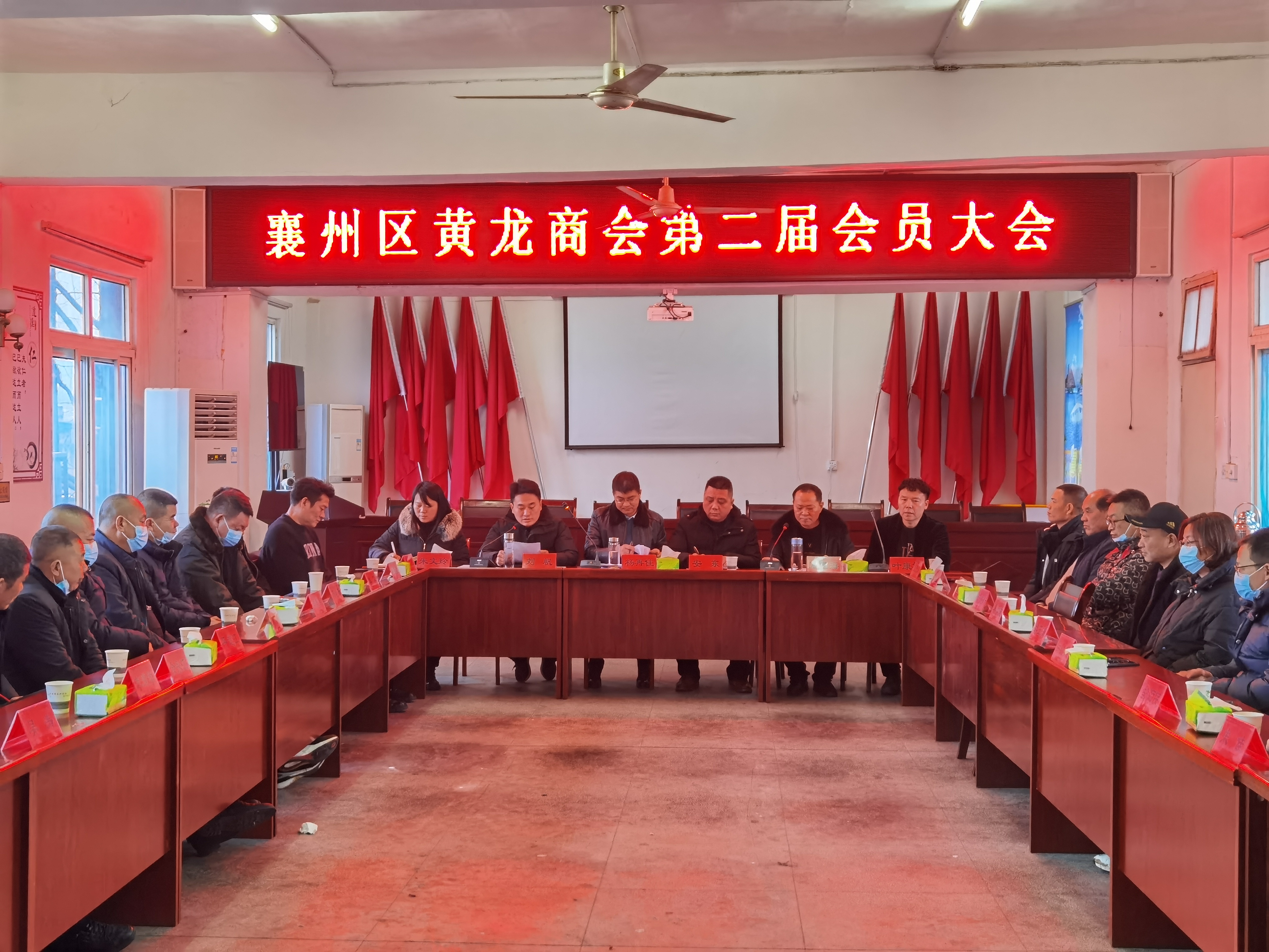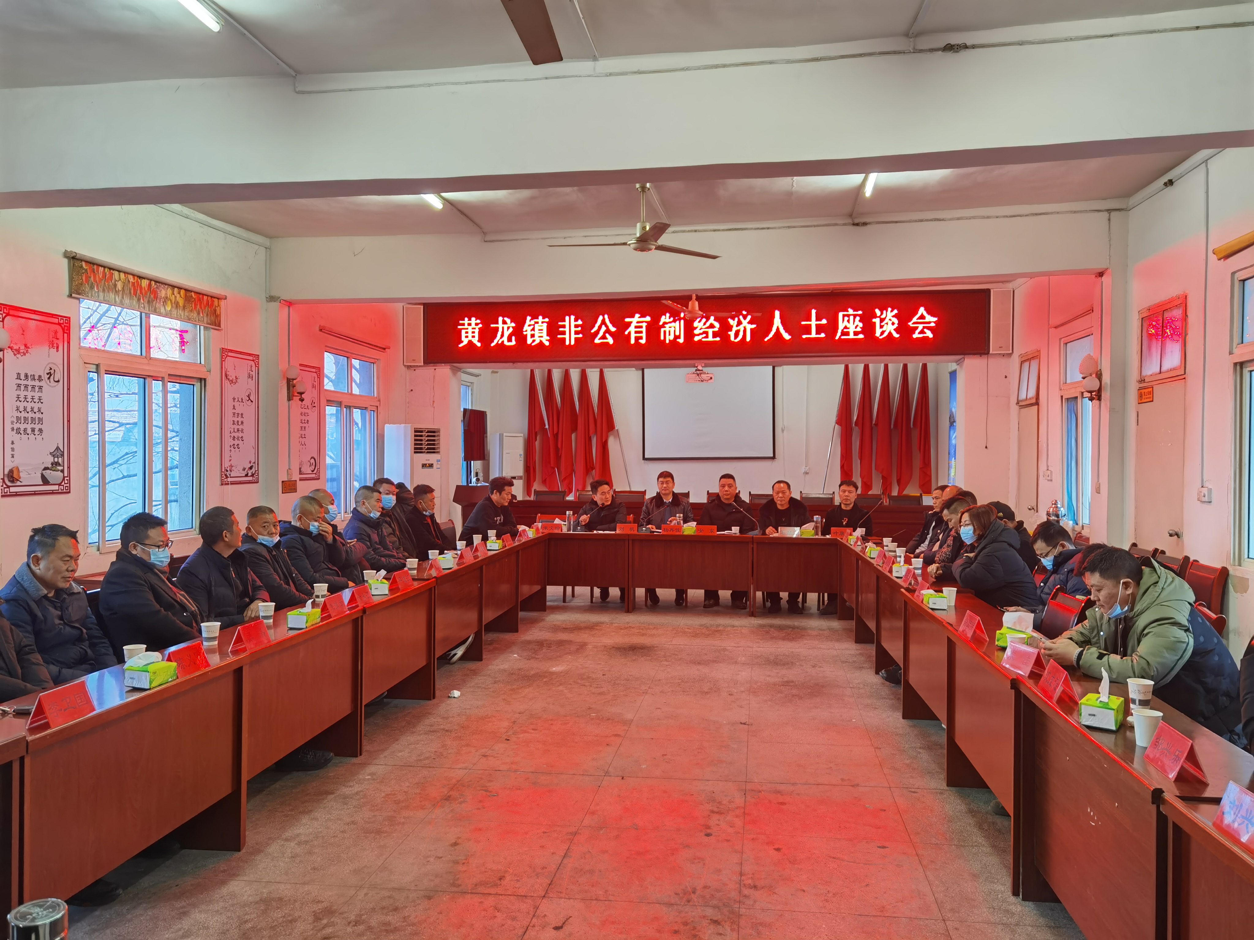 三农融媒湖北襄阳讯(通讯员 杨涛)1月28日,隆冬虽寒,但心中温暖。革命老区襄阳黄龙镇党委、政府邀请该镇企业老总在镇三楼会议室举办黄龙商会第二届会员大会暨非公有制经济人士座谈会。按照疫情防控要求,该镇部分企业老总应邀出席。
