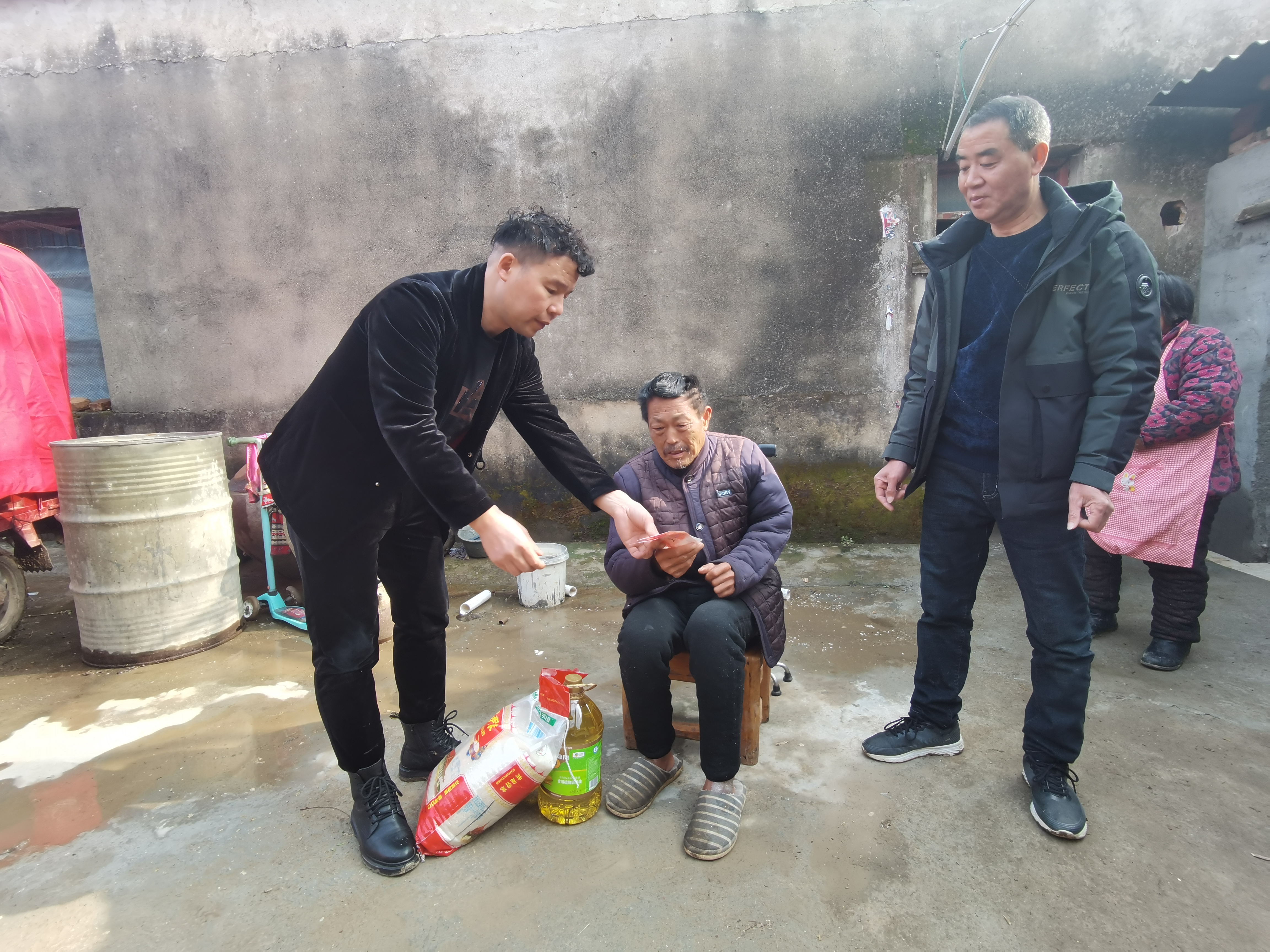 今年回家过春节,叶康桂又主动找到高明村支部书记罗文国,拿出6000元,为困难群众送去新春的“爱心大礼包”,让他们过个健康幸福年。现年70岁的李元华,2020年突发脑出血,高血压中风瘫痪,生活十分困难。看到前来慰问的叶康桂,作为一名老党员的李元华老人感谢党组织关心,感谢企业关爱。