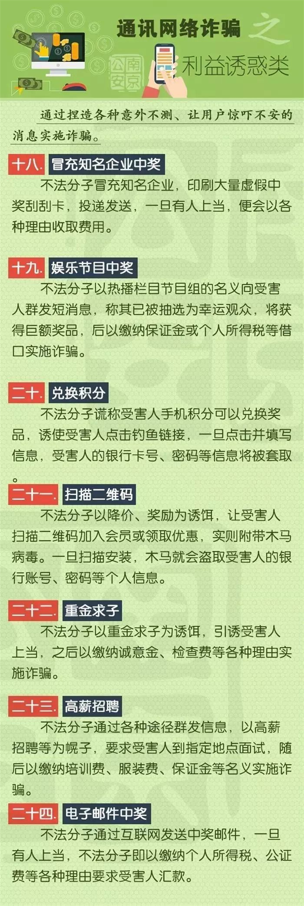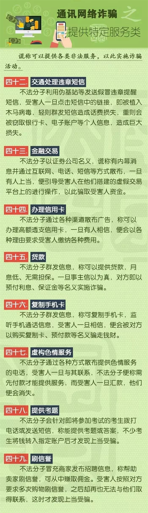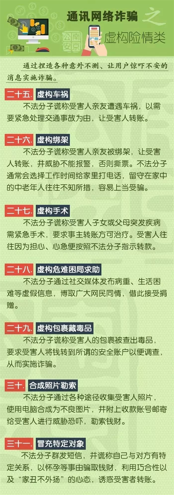 下面就让我们来见识一下9大类型、58种诈骗手法,亮出我们悬在诈骗分子头上的达摩克里斯之剑,让骗子们无处遁形!