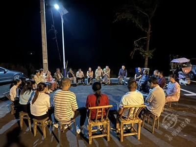 在明亮的路灯下,大家围坐在一起,围绕月星山村的特色产业发展、高标准农田建设、农村道路拓宽等话题展开热烈讨论,现场气氛活跃,村民畅所欲言生产生活的“急难愁盼”,党员干部们耐心倾听、认真记录,对能当场解决的问题当场协调解决,不能立即解决的将争取相关部门支持予以积极配合解决。