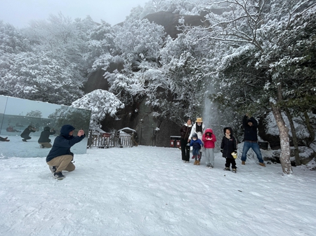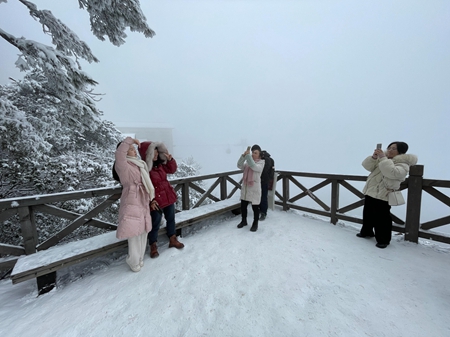 一场大雪,将江西省上饶市广信区灵山装扮得宛如一幅素雅的水墨画,雾凇雪凇摇曳生姿,宛若人间仙境,吸引了不少游客前来欣赏雪景,享受冰雪世界带来的快乐。
