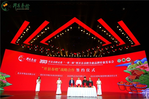 会上,还举行了“开县春橙”战略合作签约仪式。开州区农业农村委与北京首食供应链管理有限责任公司、北京市果品有限公司、国礼(北京)艺术品有限公司签订开县春橙战略合作协议,共同携手前“橙”,助力开县春橙香飘世界。