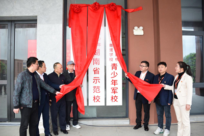 校长黄旭与中国青少年国防体育发展联盟相关负责人共同揭牌