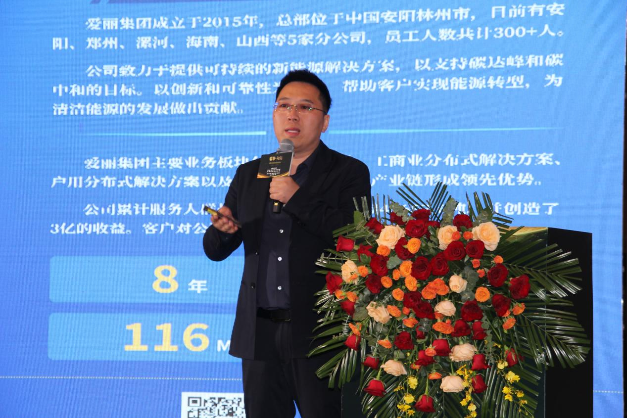 爱丽集团董事/CEO 刘锦通以《聚势·向新 工商业光伏破局与增长》为主题发表主旨演讲。刘总详细地分析了当下行业混乱、资源不匹配、恶意竞争等市场问题,并以爱丽新能源企业经营实际发展中的经验为出发点,切实地提出行业针对性解决方案,系统地总结出通过品牌势能营销、精准流量获客、综合平台运营的系列光伏行业蓝海打法。光伏创业也要具备流量思维与平台思维,建立自品牌、自传播、综合平台的新光伏营销体系,进而实现提高品牌影响力、实现有效资源链接、提高市场占有率。