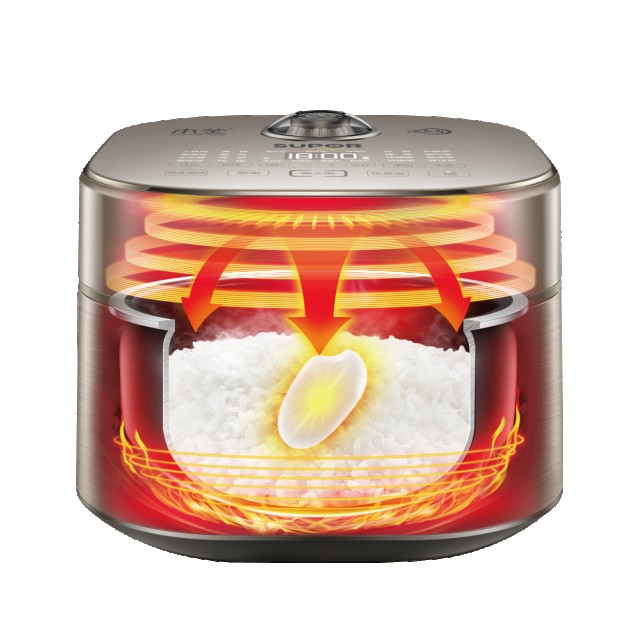 苏泊尔第六代革命性加热方式,粒粒透芯。远红外穿透加热技术,高温直达米芯。广口球底本釜内胆,满锅环流沸腾。活芯聪明火烹饪曲线,恒温浸泡,活芯醒米。远红外上盖加热,有效减少冷凝水,拒绝水泡饭。 远红外烘烤功能,提高空气蓬松感。