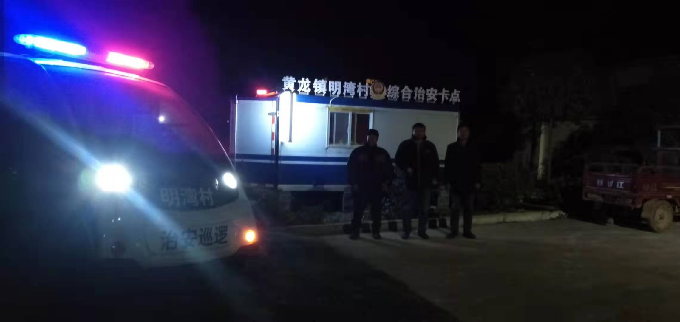 模式二:卡点加巡逻,村村共抓平安。今年以来,黄龙镇投入14万元在镇边界及中心村高标准建立了6个治安卡点。今年年初,因疫情防控,镇政府为辖区主干道沿线各村购置了一批厢式移动房做为防疫卡点。全区平安稳定“百日会战”启动后,刘岗村率先对该卡点布置辅警力量,进行内外改造、制度上墙、设置警灯、购置治安和消防设备等,为“小货厢”赋予了村级警务室和微型消防站的职能,形成了以村警务室为阵地,通过配齐巡逻标志、划分巡逻片区、编排巡逻值班、明确巡逻纪律、管好巡逻车辆、做好巡逻日志等行之有效的治安巡逻常态化机制。刘岗村的经验在全镇多村推广,强化了乡村治安“堡垒”作用。为强化物防装备配置,全镇又投入47.6万元,购买了14辆巡逻车辆,用于夜间治安巡逻防控;同时,投入2.5万元为村辅警购置了单兵装备。黄龙镇是襄州区第一个强化治安卡点建设和装备治安巡逻车及单兵装备的乡镇,也是第一个实现治安巡逻“军事化管理”的乡镇。