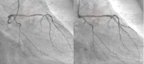 10月6日凌晨1:00多,我感觉左胸有一点疼痛,迅速扩展为大面积剧烈疼痛,呼吸困难,服救心丸、硝酸甘油,不起作用。家人打了999急救电话,15分钟后急救车赶到,医生给我做了心电图,告知家人为大面积心肌梗死,心脏随时停跳,病危程度为“极高危”。医生给我用氧气袋输氧、输液后,要送往北京心血管中心安贞医院,至少40分车程。我感觉疼痛剧烈,提出就近医院救治。急救车风驰电掣奔向了潞河医院。10几分钟的车程,我痛苦的感觉很漫长。进入医院急救室,急救医生输氧、输液,给我吃药片,不让喝水,要咬碎用唾液吃下。我因呼吸急促,口干舌燥,艰难的吞服药片。疼痛依然剧烈,如同千刀绞心。医生决定去手术室。恰逢导管室主任在岗,迅速手术。我脑海里出现了白色的天空,分布着大小不一的黑色斑点,紧接着天突然一片漆黑了。大脑缺血,心脏停跳了。医生切开我右手腕动脉,插入导管,直通心脏,抽吸血栓,电击,一系列抢救后,我心跳复苏。我脑海里出现了美丽晚霞景色,晚霞上有大小不同的圆黑点,就像太阳黑斑,我心想这美丽的景色在哪里,左右回头看是啥地方,意识恢复了,我看到医生在我的右手动脉插入导丝。扩张气囊,放入直径3毫米、长23毫米和直径3.5毫米、长23毫米不锈钢支架各一个,2个支架连接在一起支起心脏左前降支血管,生命得以延续。到CCU病房,我看了一下表,3:30。医生说,冠心病中死亡率最高的是急性心肌梗死,在急性心肌梗死中左前降支梗死死亡率最高,被称为“寡妇制造者”和“鳏夫制造者”,存活率只有25%,大部分患者因为没及时到医院救治而死亡。著名人物马季、侯耀文、古月、高秀梅、王平、红线女、袁世海、罗阳都是突发急性心肌梗死救治不及时而失去了生命。