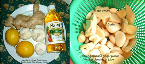 所需原料:1 杯柠檬汁 、1 杯姜汁、1 杯大蒜汁、1 杯苹果醋。