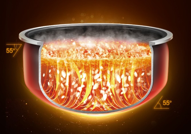 最后说一下3mm聚能本釜内胆的设计,苏泊尔远红外本釜IH电饭煲采用的苏泊尔电饭煲第二代本釜内胆,不仅延续了以往的广口球底器型,还全面升级了55°双黄金夹角,形成强对流,环流更充分,每一粒米都饱满透芯,Q弹香甜。另外,55°聚能角,形成蓄热“聚能环”,从而锁住饭香。