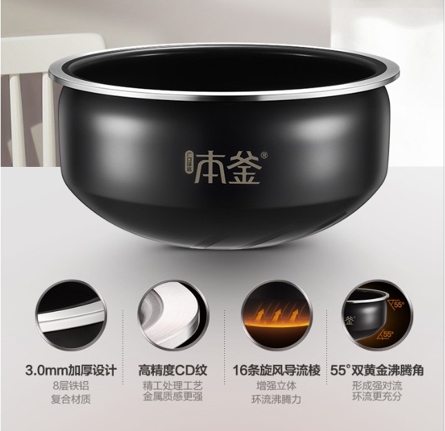 3mm聚能本釜内胆,蓄热性强且米饭口感佳