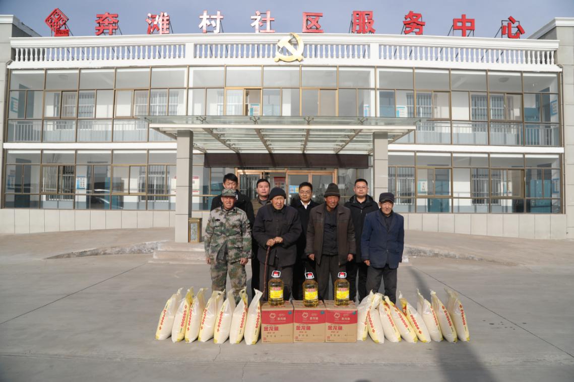 在慰问现场,看到拄着拐杖行动不便的老人,钱进和马翔紧走几步,帮老人把粮油放到车上。一旁的村支书忙着给解释,老人没办法,非要来,要当面感谢公司的关怀和关心。不放心的他俩再三叮嘱村支书一定要考虑周全,把老人平安送回去。