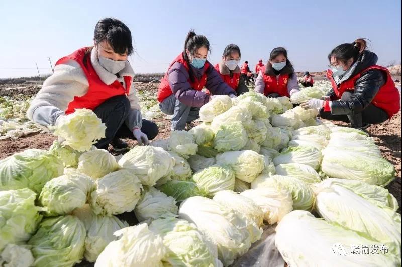 在石桥镇的东温庄村,志愿者们正在为滞销的3万斤大白菜进行分拣和打包。据了解,由于受到新冠状肺炎疫情的影响,石桥镇的部分农产品出现了滞销,尤其是大白菜、莴苣等一些不容易保存的蔬菜,由于没有经销商采购而滞销,价格更是一路下滑。