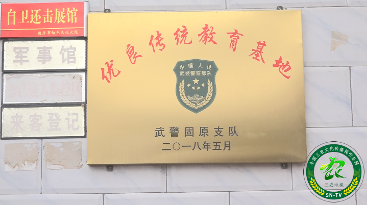上图为2018年5月武警固原支队给固原红色文化大院授予”优良传统教育基地“。